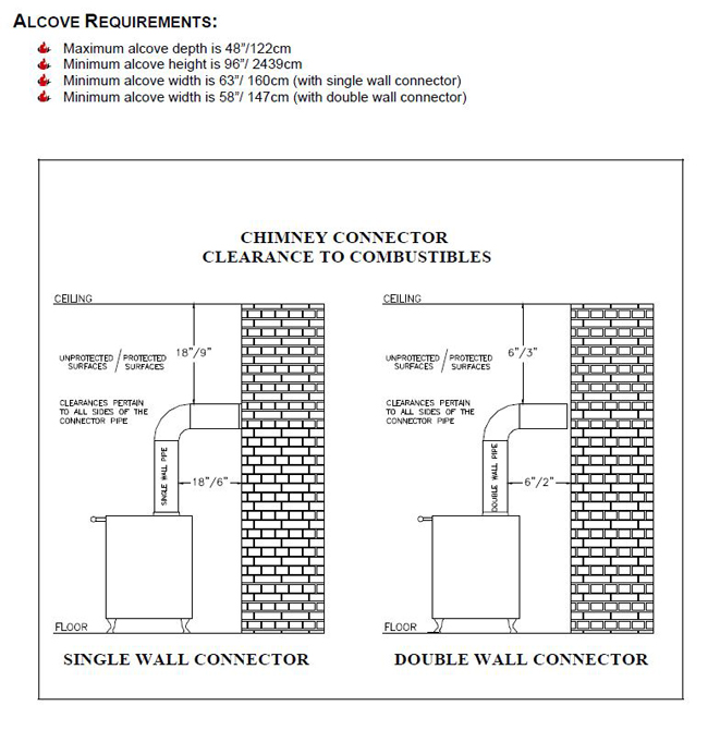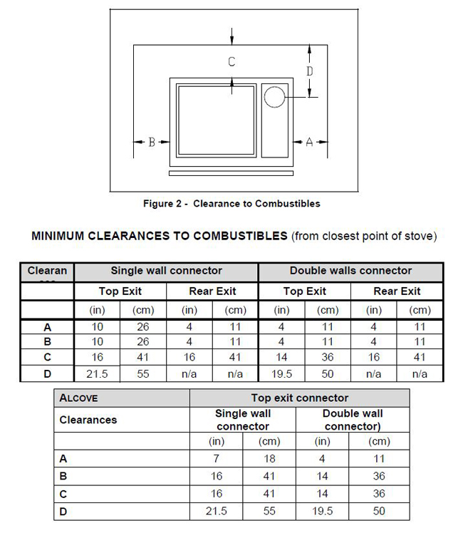 | Clearances | Single Wall Pipe | Double Wall Pipe |
