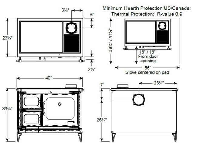| Stove Dimensions | 33 3/4"H X 40"W X 23 3/4"D | |