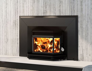 The Osburn 1800 insert is a practical and sophisticated choice for your living room or basement fireplace, providing a majestic view of the fire through a bay window giving your home a warm glowing atmosphere.