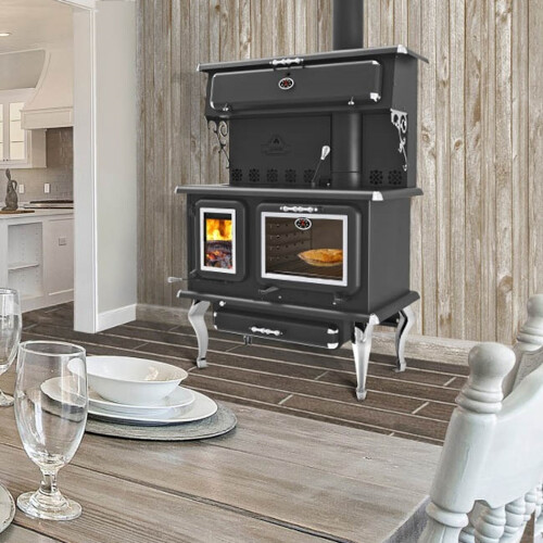 You will see from the traditional styling of the "Cook" that J.A. Roby has captured the beautiful elegance of a bygone era in this new woodburning cookstove. Decorative touches reminiscent of the Danish Rosette characterize the European inspired back splash for a touch of elegance in your home.