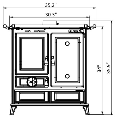 | Unit Dimensions (With Rails/Flue Outlet) | 35.9"H x 35.2"W x 22.8"D |