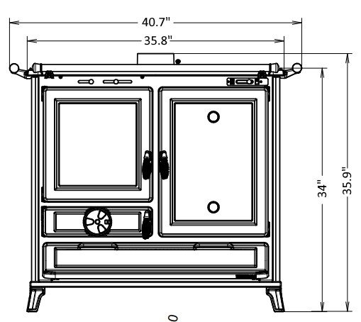 | Unit Dimensions (With Rails/Flue Outlet) | 35.9"H x 40.7"W x 26.6"D |